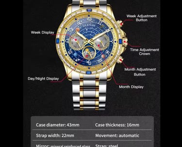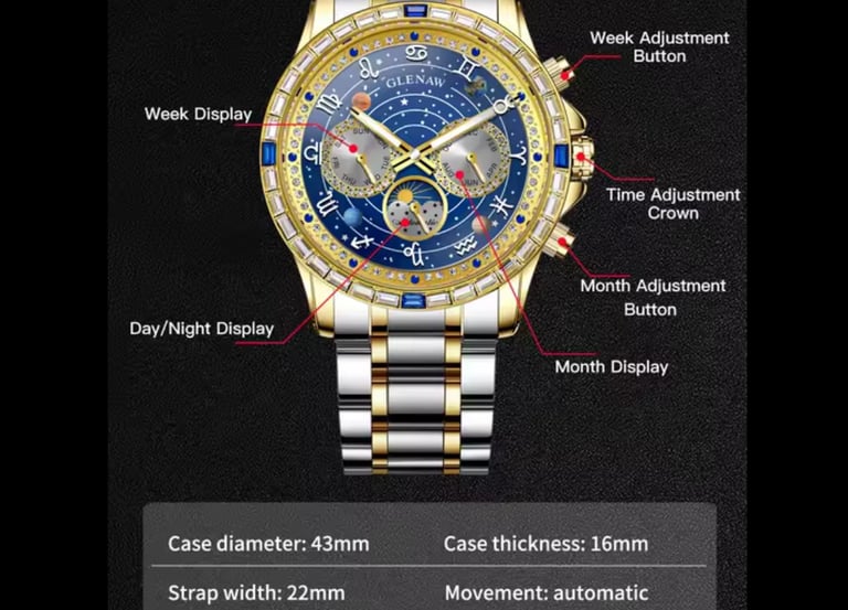 Reloj mecánico multifuncional totalmente automático de negocios de alta gama Glenaw para hombre, reloj luminoso resistente al agua de moda.